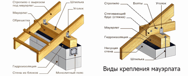 блочных домов. Например, в деревянных домах не используется мауэрлат, вместо этого стропила крепятся к верхнему